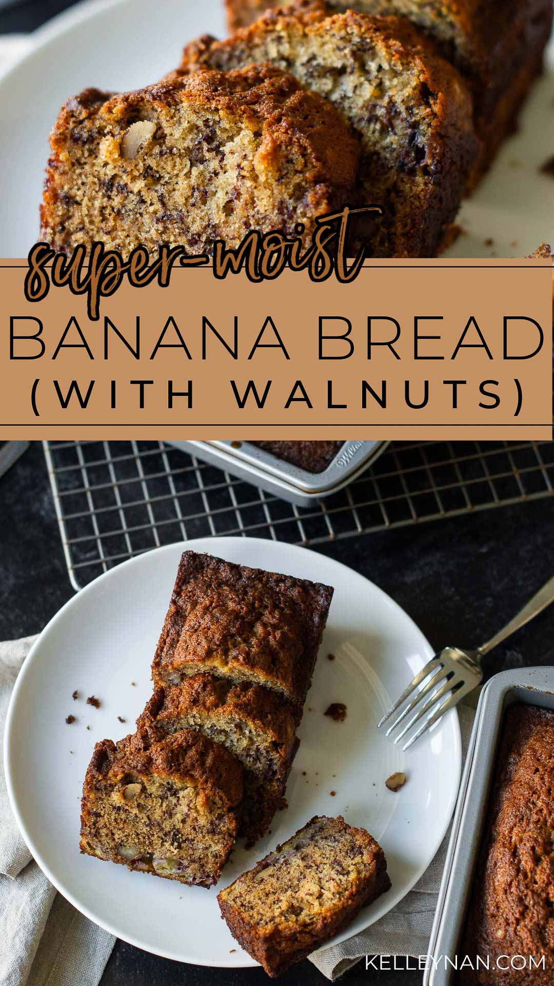 Save, print, or pin the recipe below to make the most delicious, moist banana bread with walnuts…