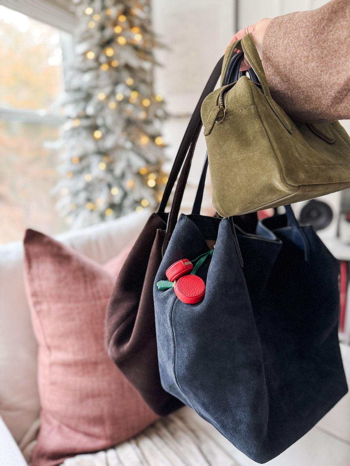 Brown Shopper Tote (40% OFF) | Navy Shopper Tote (40% OFF) | Green Suede Bag (67% OFF) | Cherry Bag Charm (25% OFF)