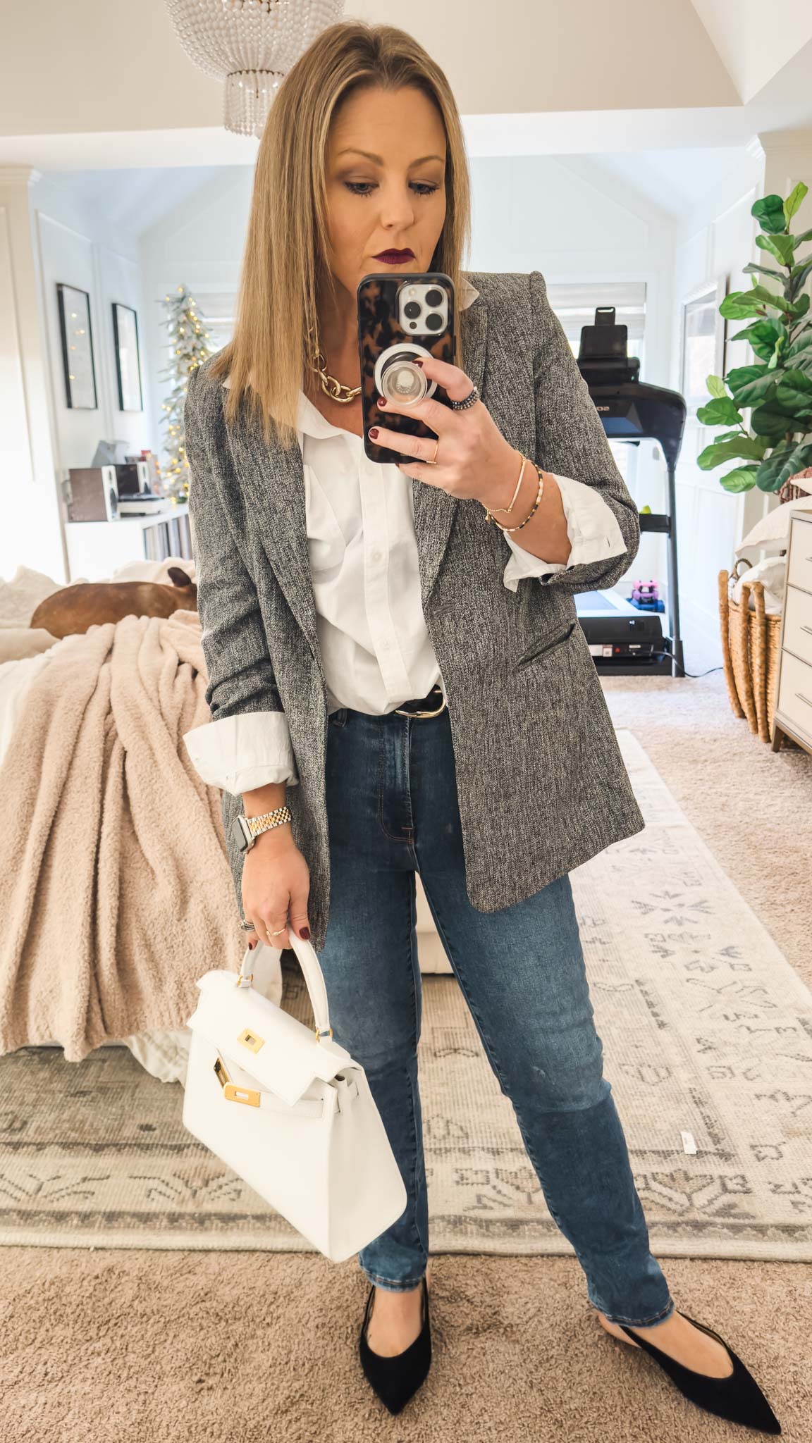 Jacket (30% OFF) | Button Down Shirt (50% OFF) | Jeans (40% OFF) | Slingback Flats (66% OFF) | Purse (similar) | Necklace (40% OFF) | Apple Watch Band (40% OFF)