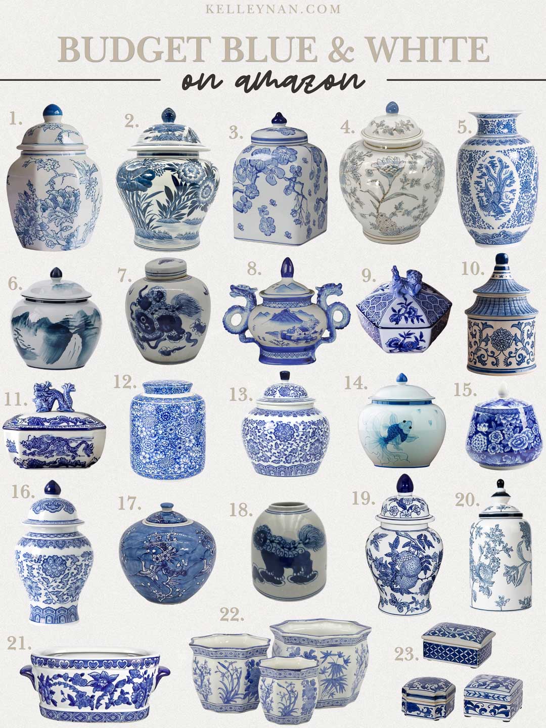 If you’re in your blue-and-white era too (welcome), I couldn’t resist sharing some of my favorite budget-friendly ginger jars and porcelain pieces on Amazon. Some of the deals on these are seriously wild. They’re are perfect for styling on a coffee table or ottoman tray; adding a pop of pattern to shelves, sideboards, consoles, and cabinets; and mix well with books and candles for that layered look.