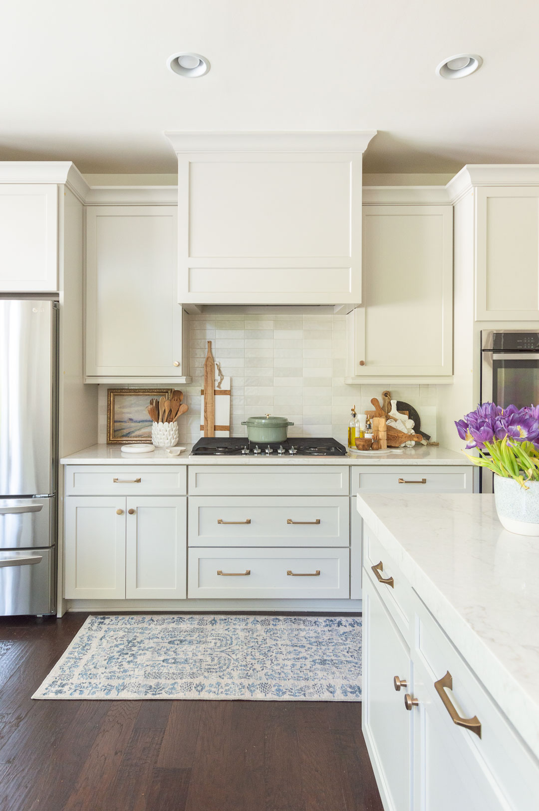 5.5 qt. Staub Dutch Oven | Runner | Backsplash Tile | Drawer Pulls – Champagne Bronze | Cabinet Knobs – Champagne Bronze | Marble Trivets (set of 2)