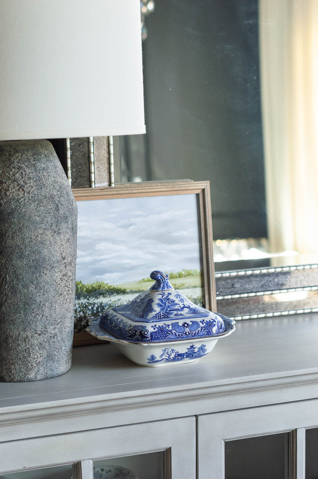 I’ve been slowly reincorporating blue and white back into our living room, and TBH, it just works every time. I have vintage and inherited blue and white, along with store finds from the past decade. It’s classic, adds contrast, is an easy way to incorporate color if you’re just starting to move beyond neutrals, and always feels fresh whether it’s January or July.