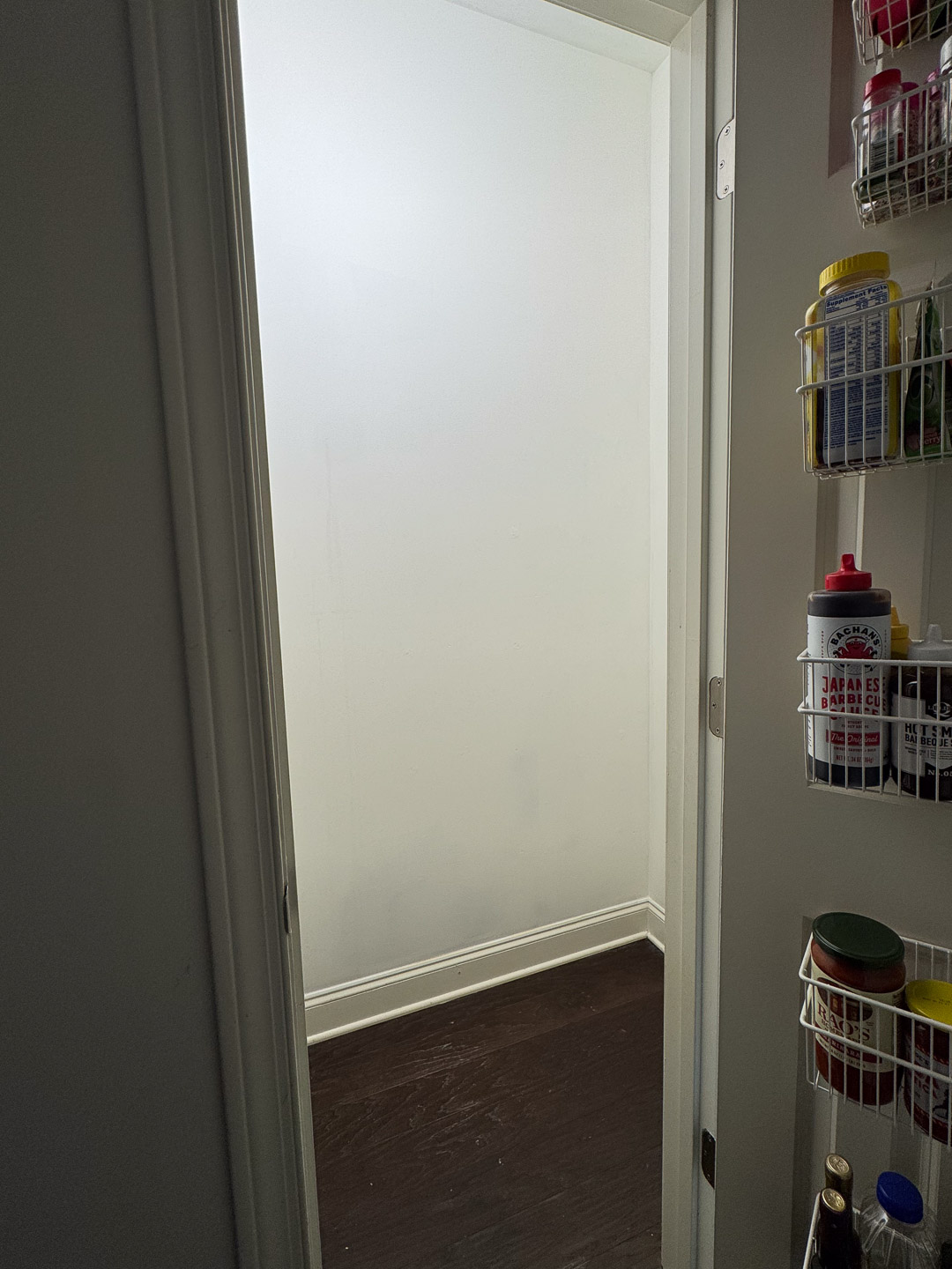 It worked… but it wasn’t working well. The pantry had slowly become a place where things were stored instead of a space that was truly designed to function. If you’ve ever had a pantry clutter, you know how easy it is to amass even more expired and unused food than normal. With our home, eating, and shopping habits being a little different now — aiming for fuel and what I know/want us to consume rather than stocking up on all the good deals for the apocalypse — there’s still plenty we buy that we may forget about, like anyone else, but our pantry is a little less packed.