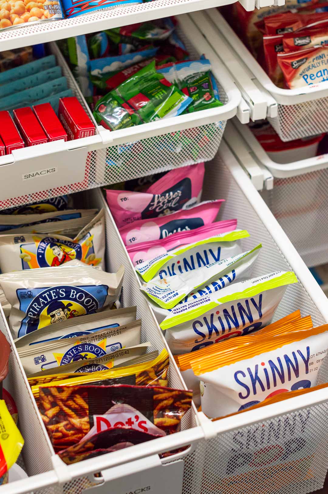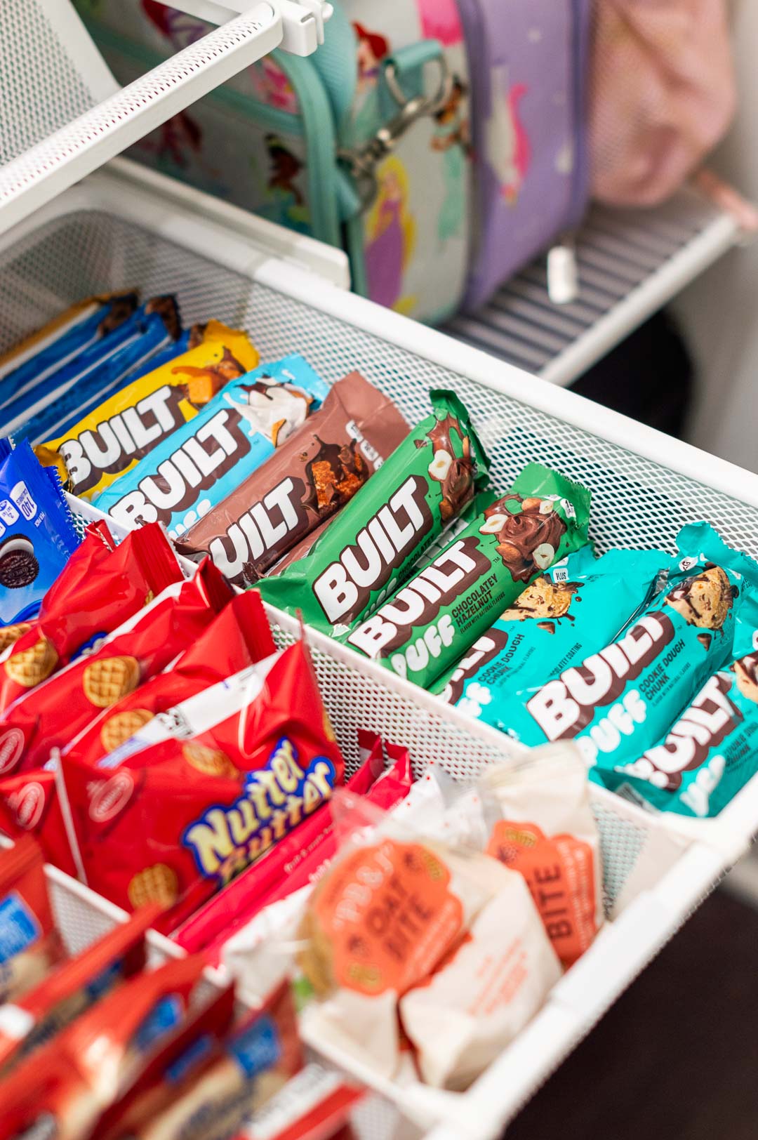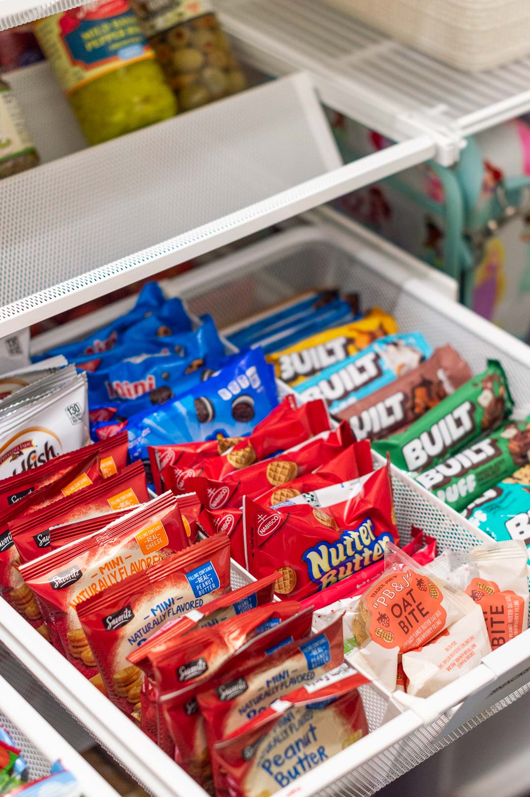 These snack drawers have made school snack/lunch packing a breeze, too! Or, running out the door — our pantry door is directly next to the garage door which works perfectly on the way to practice.