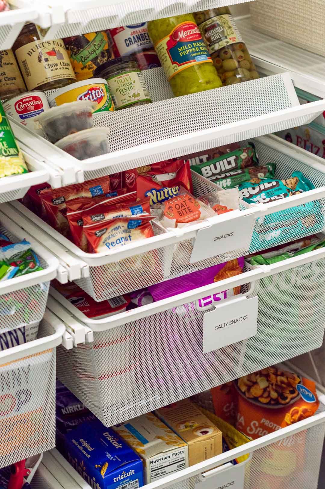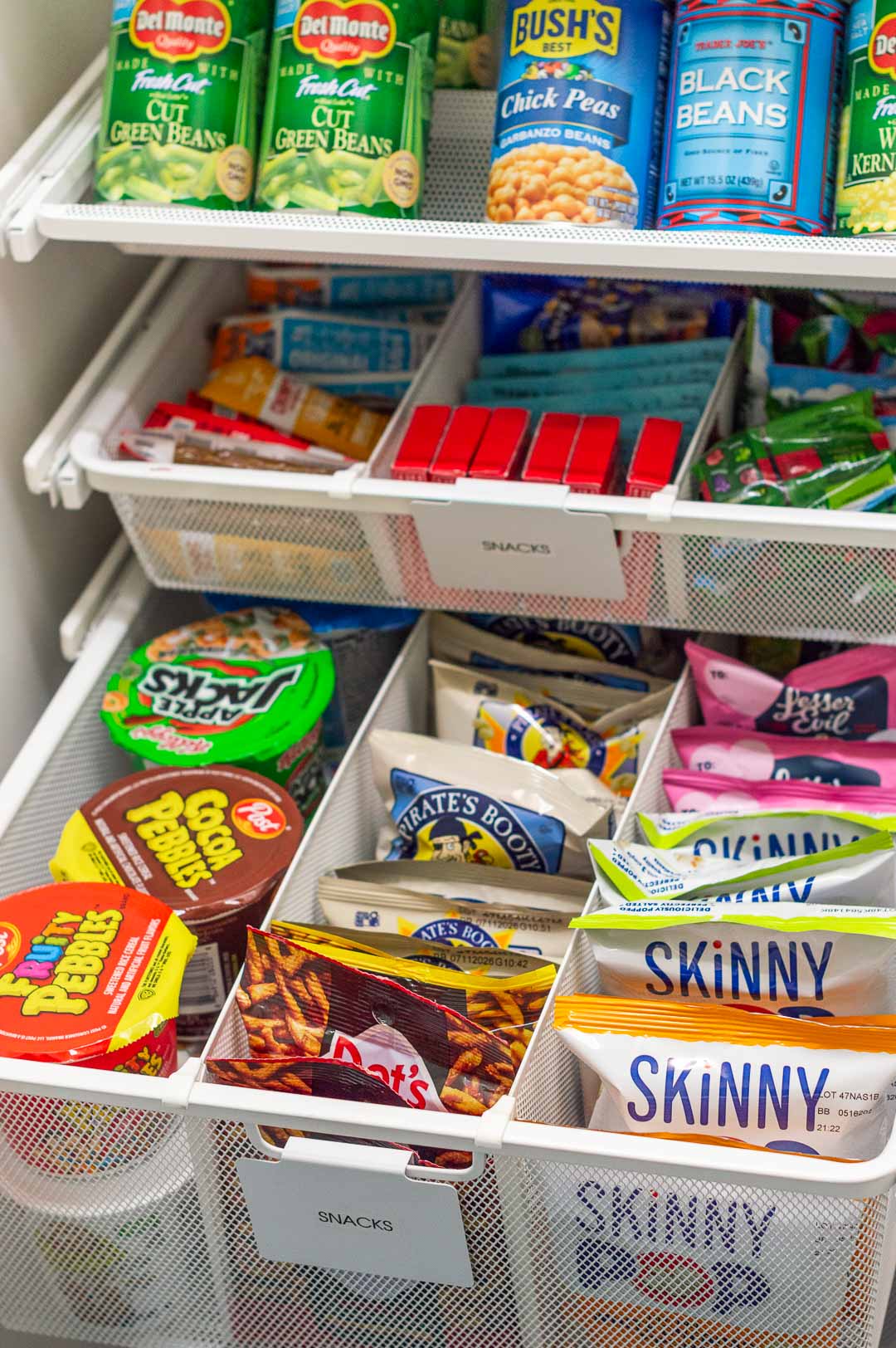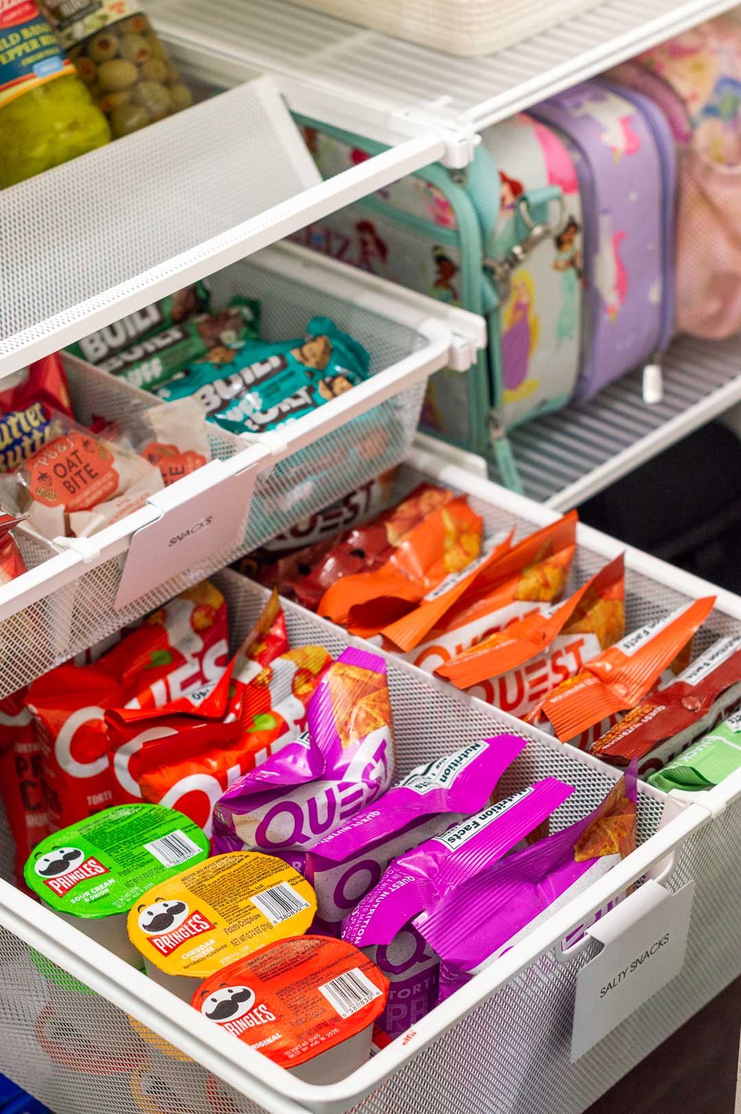 These snack drawers have made school snack/lunch packing a breeze, too! Or, running out the door — our pantry door is directly next to the garage door which works perfectly on the way to practice.