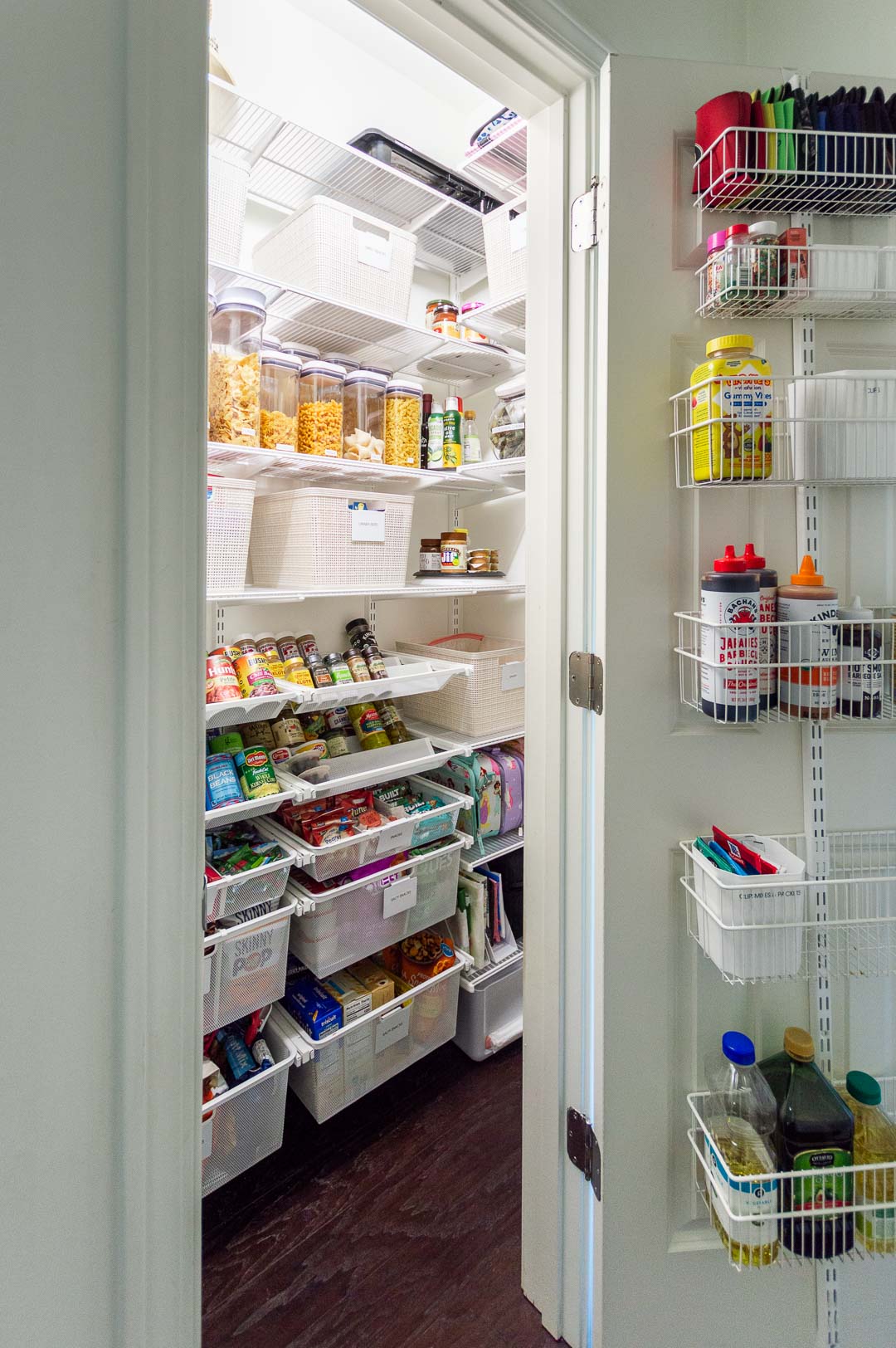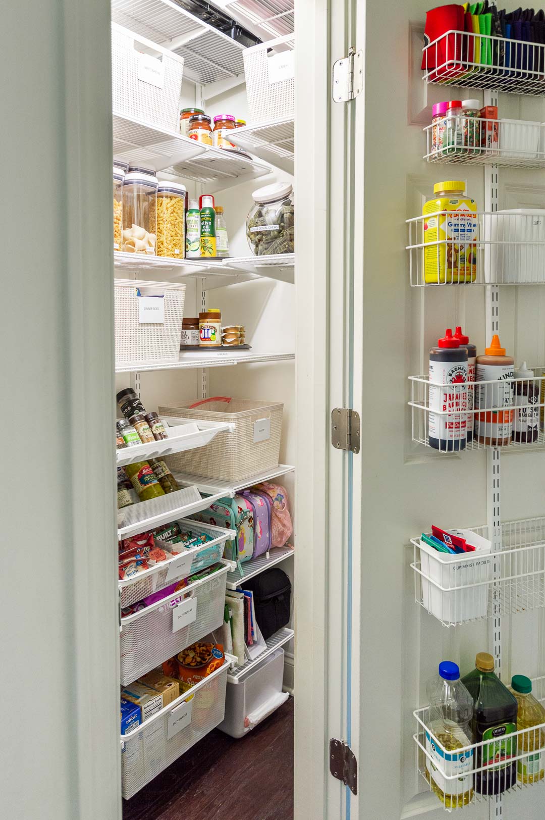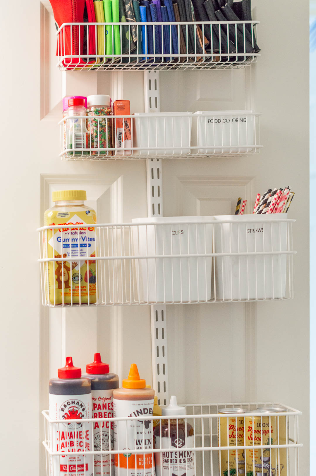 If I can add a door organizer somewhere, I will. You can see my back-of-the-door organization post HERE. The Elfa door system is one of my favorite space-saving solutions because it makes use of an area that’s often overlooked. It’s perfect for smaller pantry items and keeps frequently used things within easy reach.