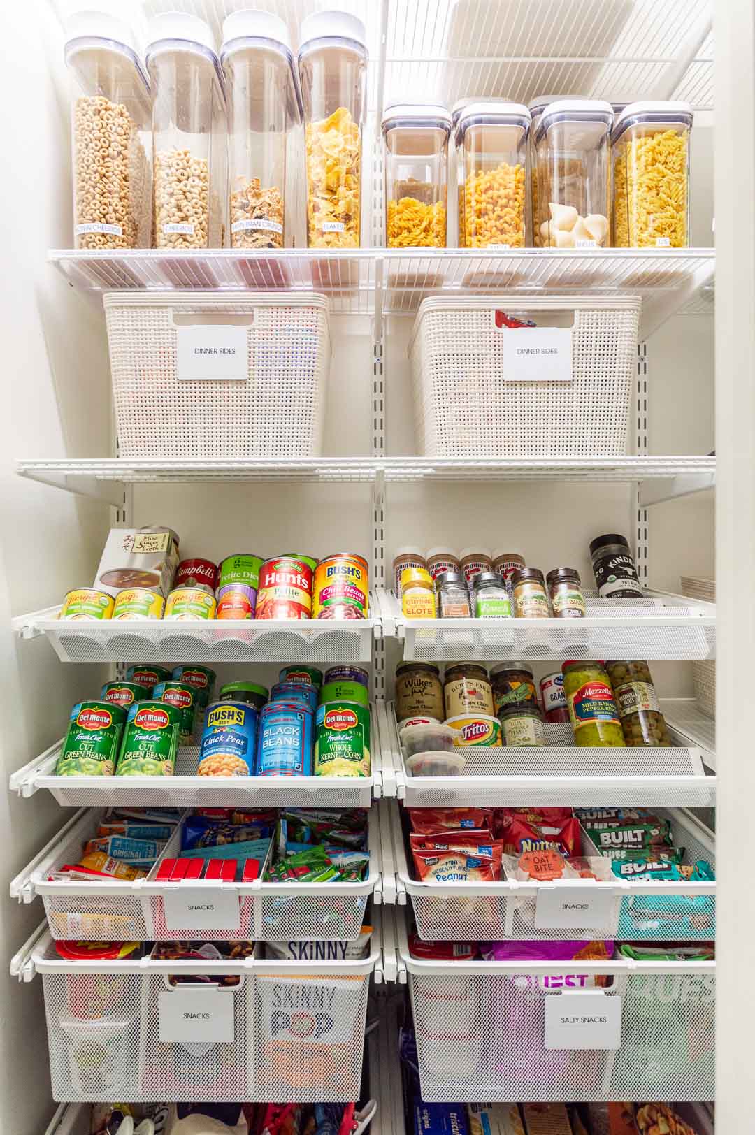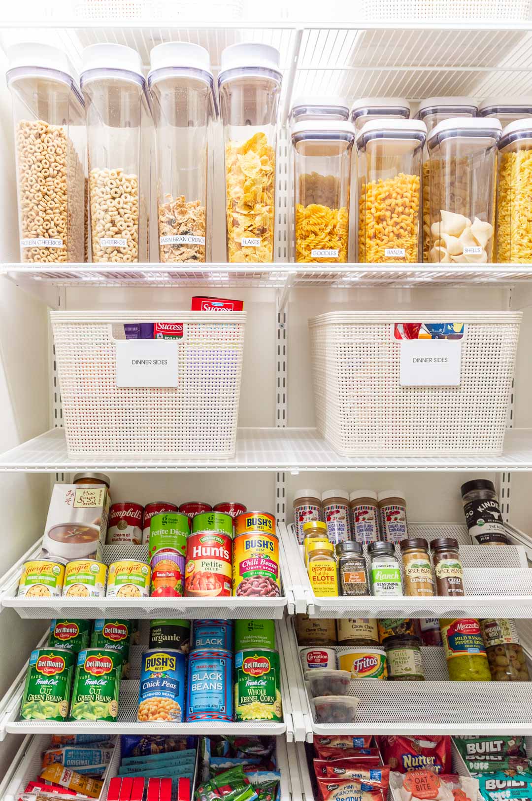 Elfa Door Organizer | Plastic Jute Bins | Label Tags | 4.5 qt. OXO Cereal Containers | OXO Pop Food Containers | Lazy Susans | Elfa Pantry | Trash Bag Dispenser