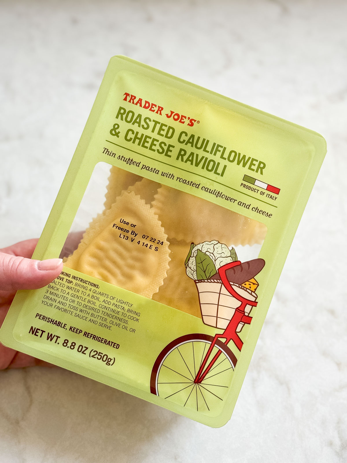 - The ravioli in the fridge section is always a must for us. The butternut squash variety is my favorite.
